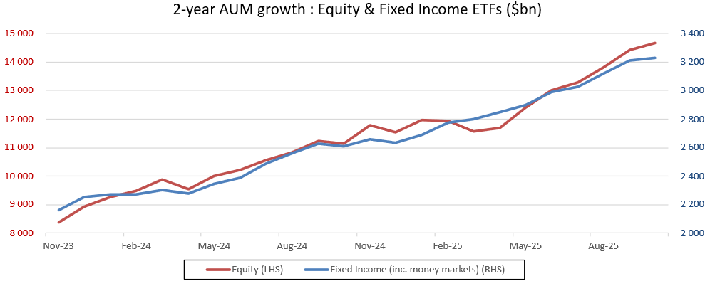 With over $17 trillion in global assets under management1 and projected growth towards $30 trillion by 20302 , ETFs have become a rapidly growing asset class, allowing for direct exposure, diversification in the allocation (across asset classes, geography, sectors, etc.), and hedging. In the United States, 2025 saw a historic first: the number of locally listed ETFs now exceeds the number of publicly listed American companies3!